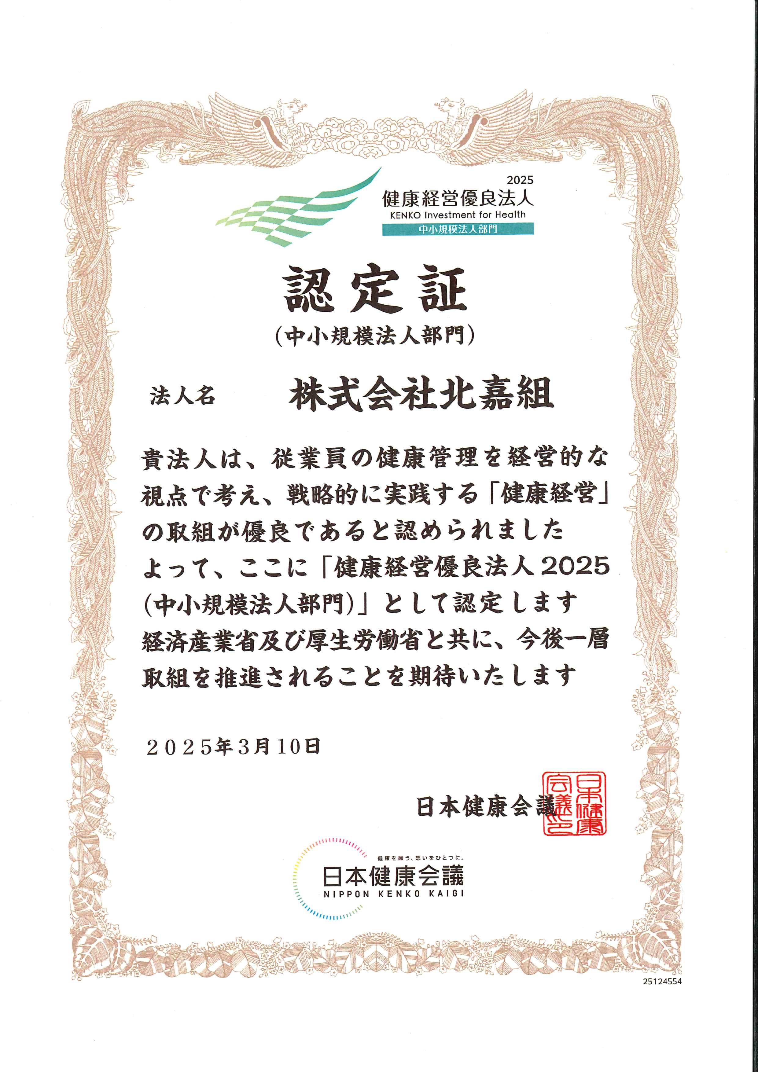 若者の採用・育成に積極的で、若者の雇用管理の状況などが優良な企業を厚生労働大臣が認定する制度です。当社では建設業界の高齢化に対する改善案を日々模索しております。